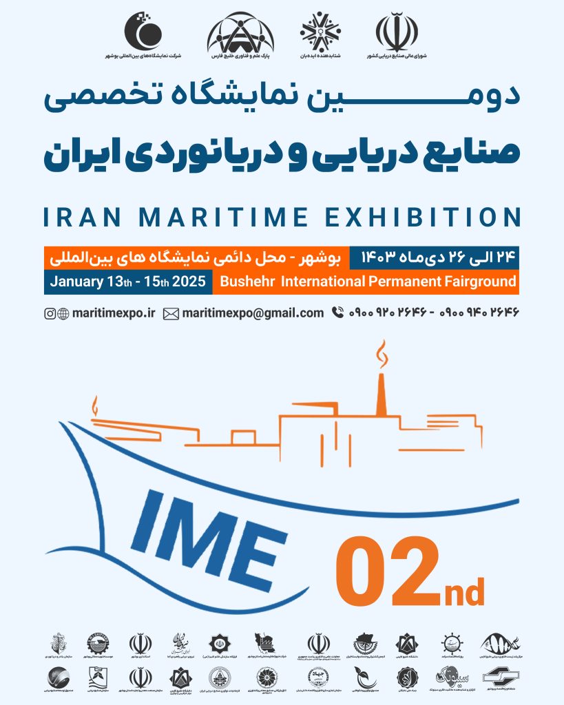 دومین نمایشگاه صنایع دریایی و دریانوردی ایران | Iran Maritime Exhibition / نمایشگاهها / از Kaveh Abedi دومین نمایشگاه صنایع دریایی و دریانوردی ایران | Iran Maritime Exhibitionاطلاعات برگزارکننده :مجری : شرکت تدبیر اندیشان ایدهیان لیانوبسایت : maritimexpo.irایمیل ثبت نام: maritimexpo@gmail.comتاریخ برگزاری: ۲۴ الی 26 دی ماه ۱۴۰۲محل برگزاری: محل دائمی نمایشگاه های بینالمللی بوشهر